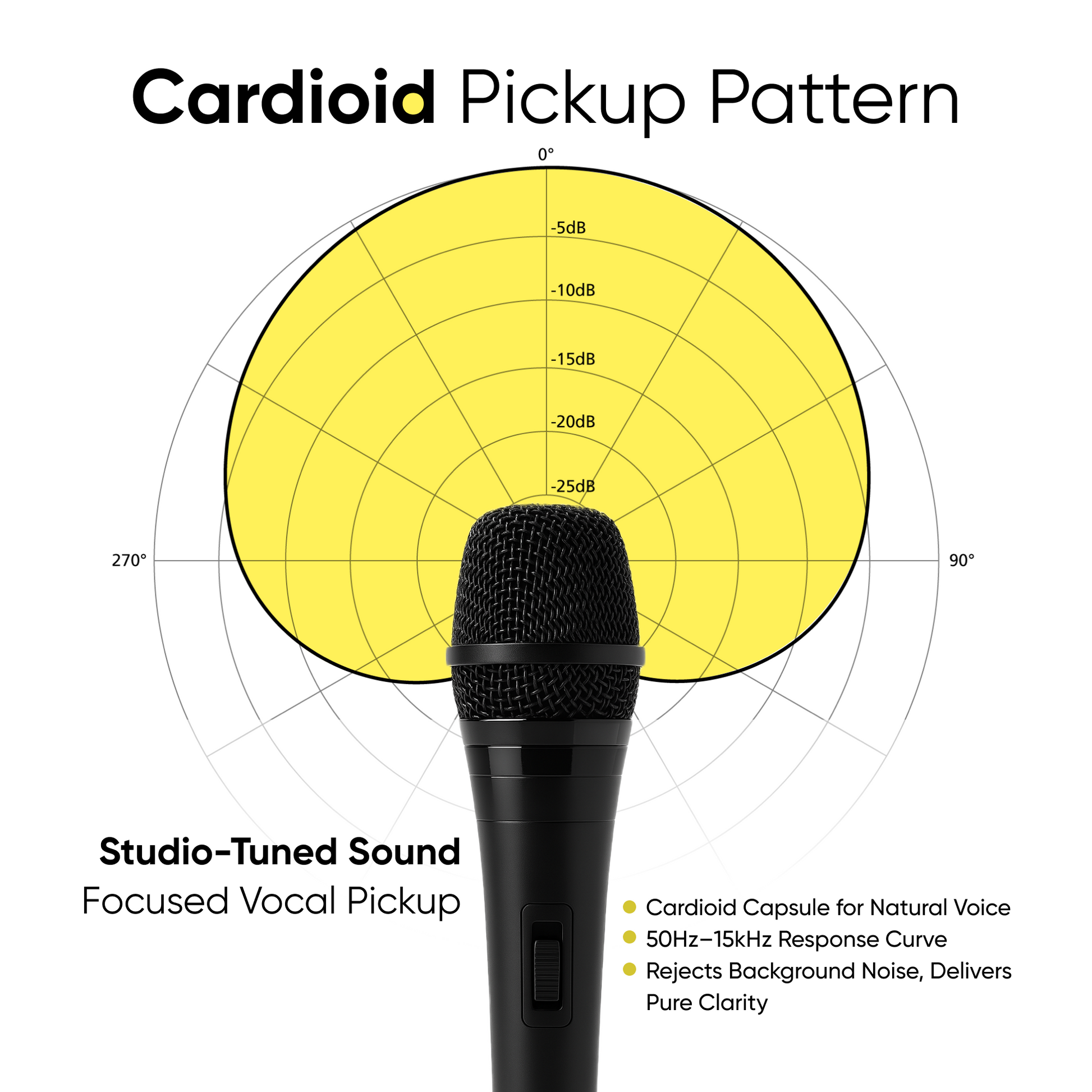 - Clear Vocals & Noise Isolation – Wired dynamic karaoke microphone features a cardioid pickup pattern that isolates vocals while reducing background noise. Perfect for live performances, podcasting, karaoke, and studio recording.