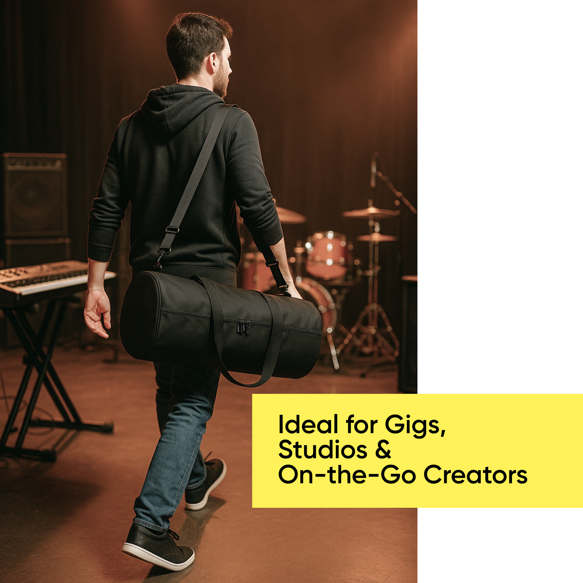 A sleek, space-saving case designed to carry and protect your microphone or speaker stand. Featuring padded interior lining for added protection and a durable exterior for everyday use. Perfect for travel, gigs, or studio setups.