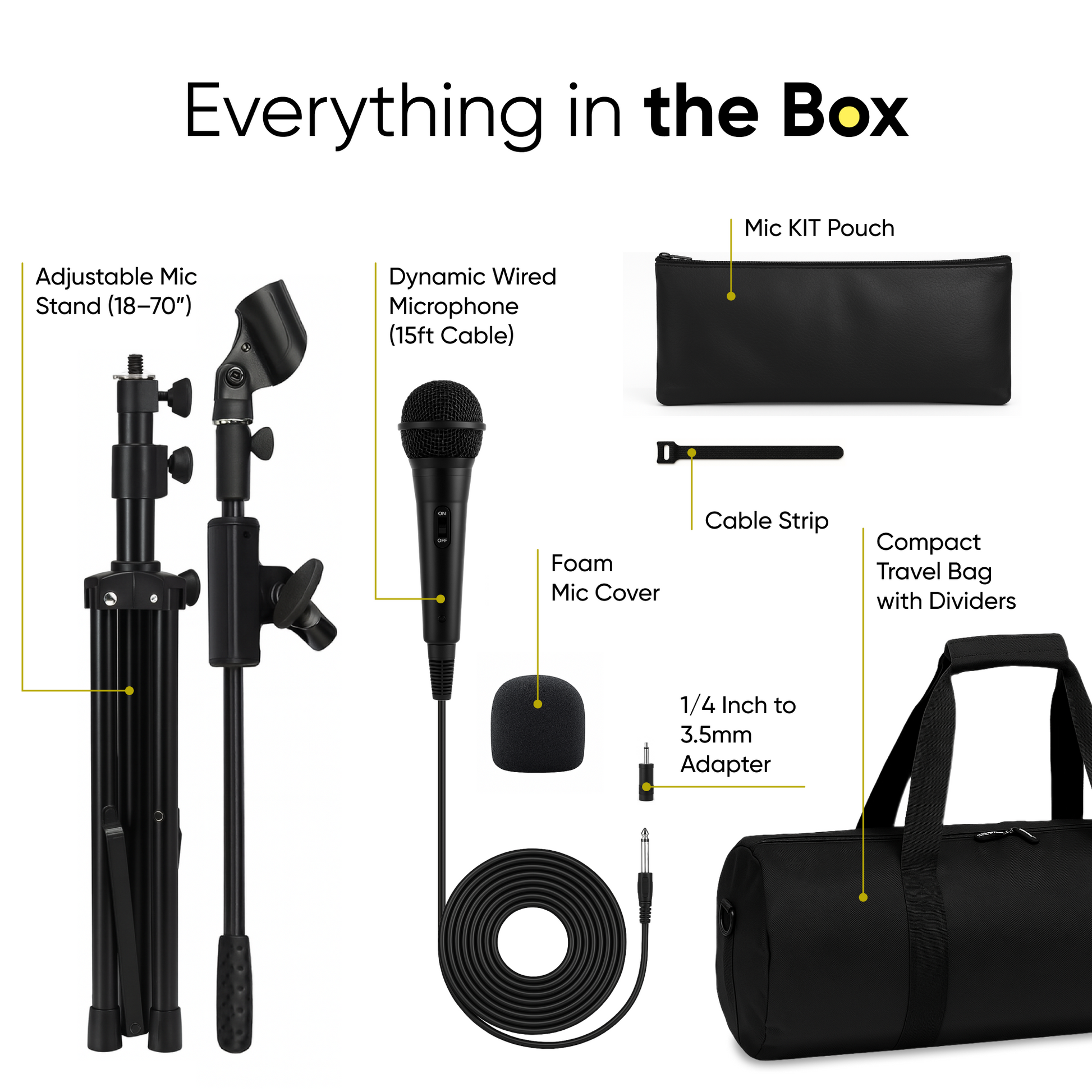 Dynamic Microphone for Singing with Adjustable Mic Stand and Carry Case