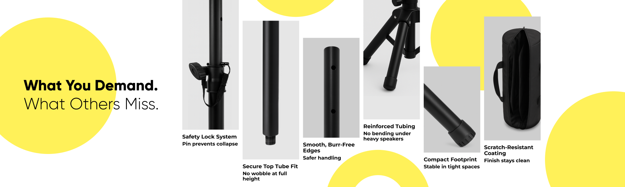 - Each tripod speaker stand delivers rock-solid stability and quick height adjustment. Engineered to perform, these stands match the quality of ultimate support speaker stands while offering the durability needed for large speaker stands in demanding environments.