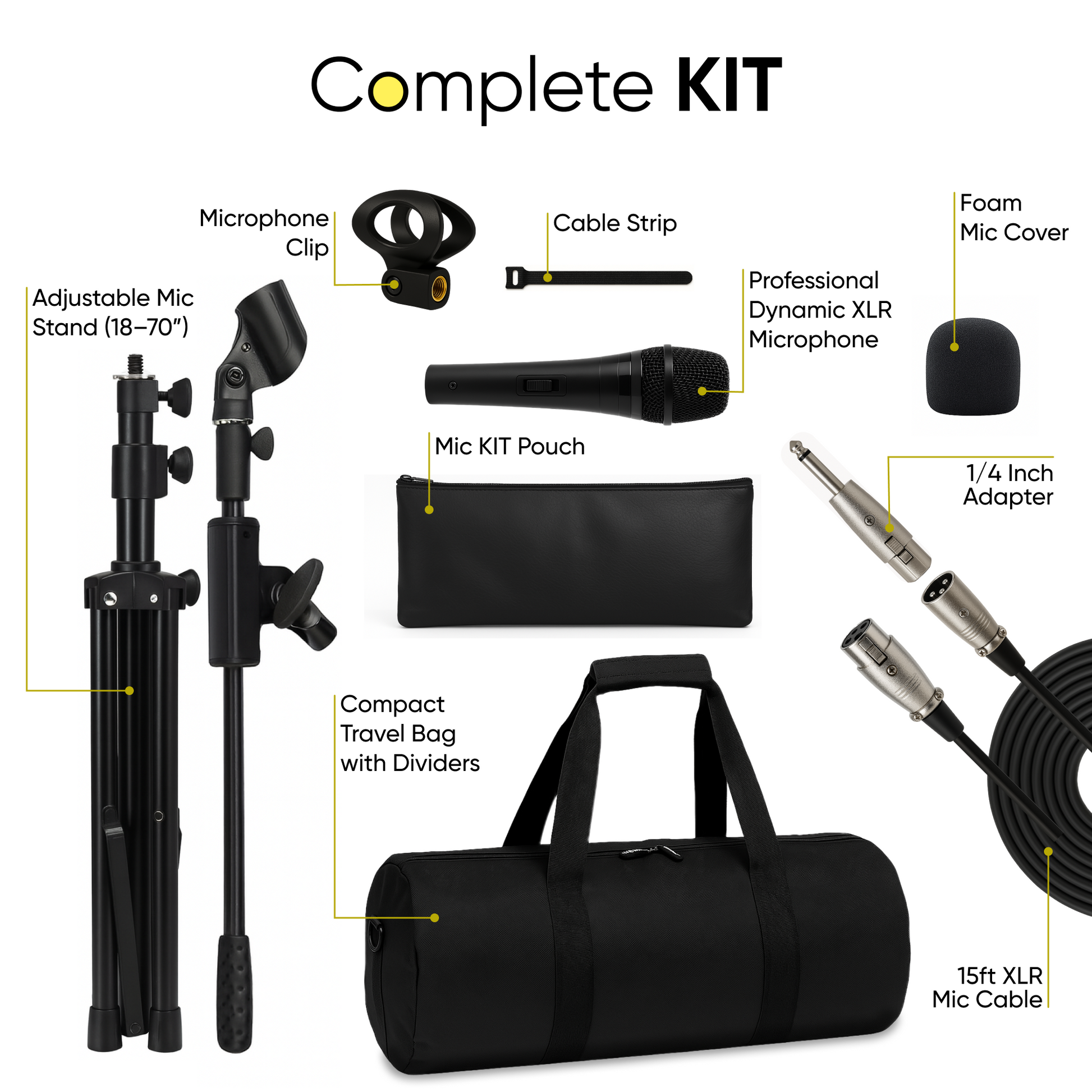 Professional XLR Microphone with Adjustable Mic Stand and Carry Case